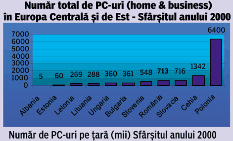 că în România erau, la sfârșitul anului 2000, un număr de 713.000 de calculatoare
