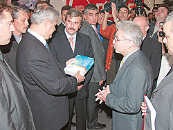 Adrian Năstase luând prima lecție de OfficeXP, produs nou lansat de Microsoft