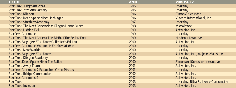 cu licență Star Trek, și aici aș aminti Simon and Schuster Interactive, Interplay,