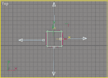 În scenă se va mai adăuga un corp paralelipipedic ([Create] -> [Geometry] -> [Standard Primitives] -> [Box]), cu următoarele dimensiuni: Length=366, Width=365 și Height=448. Aceste dimensiuni sunt informative, ele putând fi modificate în funcție de dorința fiecăruia. Se aplică și pe acest obiect un material alb, eventual cel de pe textul siglei.