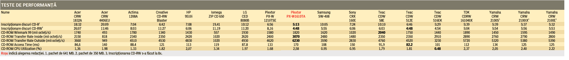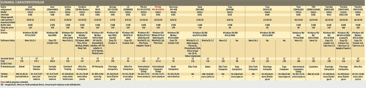testat în cadrul testului comparativ: "Unități CD-RW" (iulie 2001)