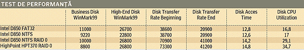 pot vedea rezultatele testelor comparative realizate cu RAID din Windows 2000
