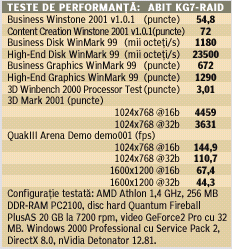 Business Winstone 2001 și Content Creation Winstone 2001 au fost folosite pentru