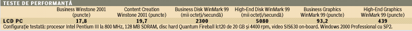 obținute în testele Business Winstone 2001 și Content Creation Winstone 2001