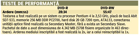 timpii de ardere pentru viteza de 1x (pentru mediul reinscriptibil) și 2x (pentru