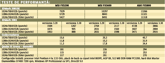 Abit Siluro FX5800 La fel ca și modelele MSI, Siluro FX5800 este însoțită de un utilitar de overclocking, GraphicMax, însă parametrii de funcționare (memorie/ procesor) fiind blocați, încercarea de a-i modifica devine inutilă. Spre deosebire de celelalte membre ale familiei FX, 5800 necesită alimentare suplimentară, la fel ca și Radeon 9500, 9700 sau 9800. Abit Siluro FX5800 [ Această prezentare face parte din articolul " În familia GeForce FX " ] PC