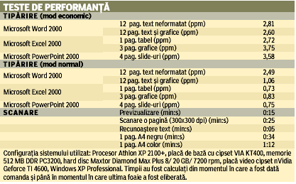 al scaner-ului s-au comportat și ele la lucru fără probleme. De menționat