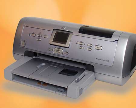 HP a "lansat la cerneală" o imprimantă aparte, proiectată special pentru sectorul foto. Cea mai importantă caracteristică a sa în acest sens este reprezentată de posibilitatea de tipărire în 8 culori. Sunt utilizate permanent trei cartușe, în total fiind livrate patru. Cartușul "în plus" deține două nuanțe de gri (una "ușoară" și una "grea") și negru. În acest fel este asigurată o mai mare acuratețe în tipărirea pozelor, fiind avantajate în special detaliile umbrelor. În plus, prin intermediul acestui cartuș devine posibilă tipărirea fotografiilor alb negru la calitate profesională, negrul nemaifiind obținut din combinarea celor trei culori Cyan, Magenta, Yellow. În cazul în care nu se lucrează cu el, cartușul suplimentar poate fi depozitat într-un locaș special realizat plasat sub capacul imprimantei, bine ferit de acțiuni accidentale. O mai mare plajă de culori se obține și datorită cartușului ce conține Cyan light, Magenta light și negru, separat de cartușul ce conține Cyan, Magenta și Yelow.