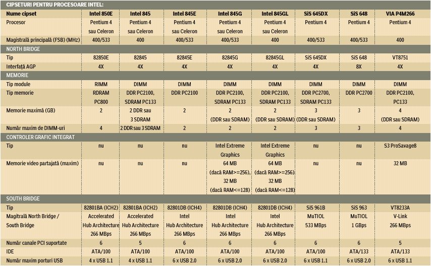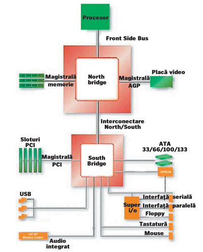 și dedesubtul magistralei PCI. North Bridge-ul conectează magistrala principală