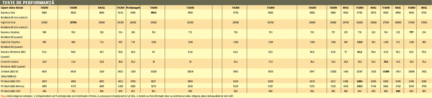și cel AGP (Business și High-end Graphics Winmark 99). Pentru o mai bună evaluare