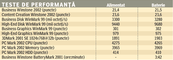 Rezultatele din teste au arătat, ca și în cazul primului sistem Centrino care a trecut pe la noi, că scăderea consumului energetic a permis creșterea parametrilor de funcționare pe baterie. În acest fel nu veți mai simți nici o diferență între lucrul pe baterie sau cu conectare la rețeaua de alimentare.